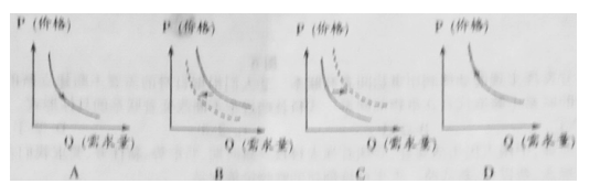 14..Z 市出台楼市“新政”,明确在市区直接向开发商购买商品房可享受 1%购房财政补贴,购买非住 宅商品房则不列入补贴范围。下列图示表示补贴前后商品房需求量变化情况,不考虑其他因素,能准确反映贴前后商品房库存变化原因的是